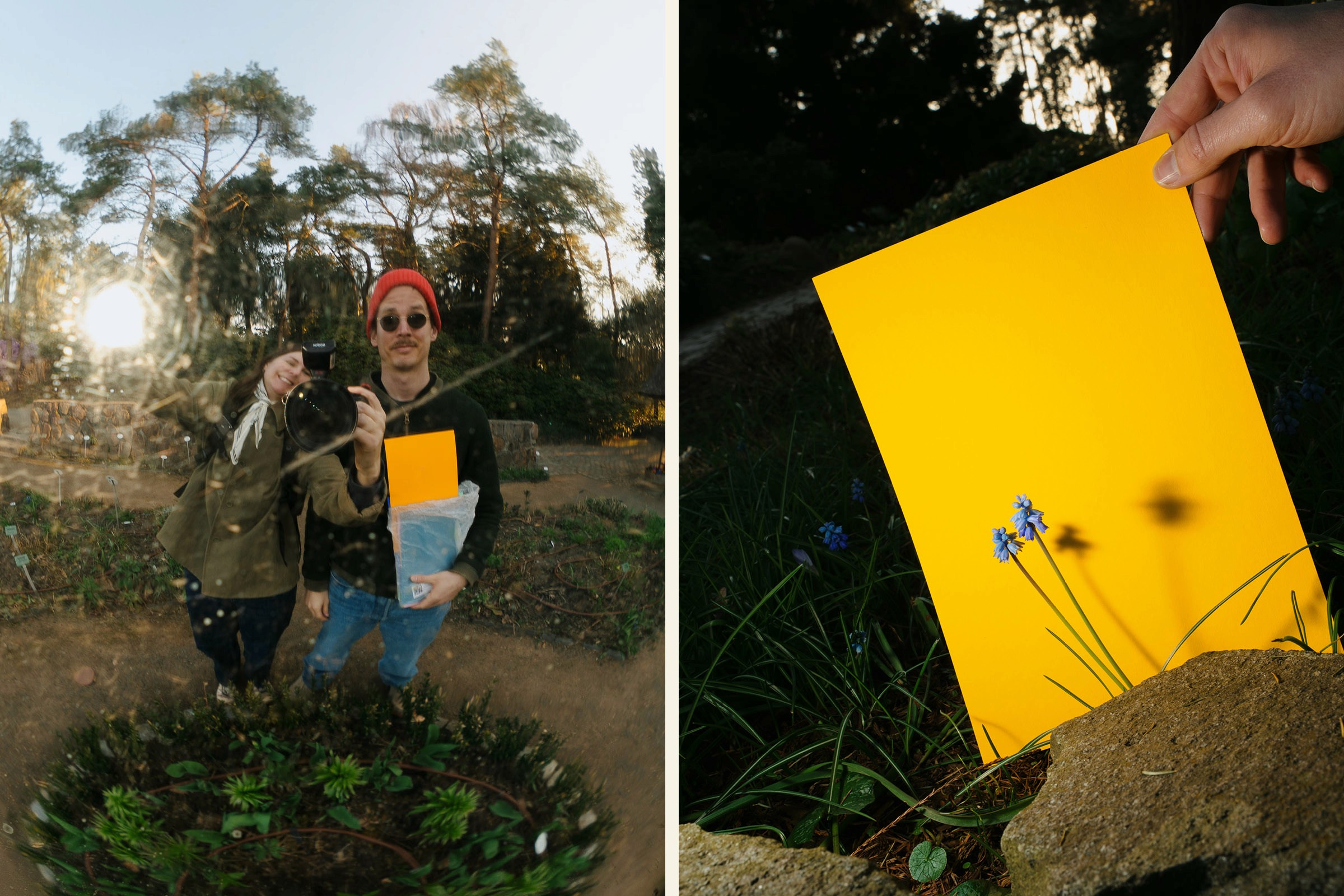 Ich habe mir buntes A4 Tonpapier geschnappt, bin im Park herumgelaufen und habe Blumen vor buntem Hintergrund angeblitzt. Zuerst bin ich alleine an einem richtig schönen Frühlingstag durch Planten un Blomen gegangen, musste aber feststellen, dass zwei Hände für Papier im Wind halten, teils den Blitz positionieren und Kamera einstellen und abdrücken leider zu wenig sind und bin irgendwann wieder nach Hause gegangen. Waren mir sowieso zu viele Pollen draußen. Als ich dann aber mit Felix an einem Sonntag mal einen Spaziergang gemacht habe, nahm ich einfach alles noch mal mit und zusammen ging es dann auch deutlich besser. Zufrieden bin ich trotzdem nicht. Dies fällt unter die Kategorie: Idee hörte sich schöner an, als es umzusetzen war. Vielleicht lag es aber auch einfach an den Konditionen. Spaß gemacht hat es trotzdem.