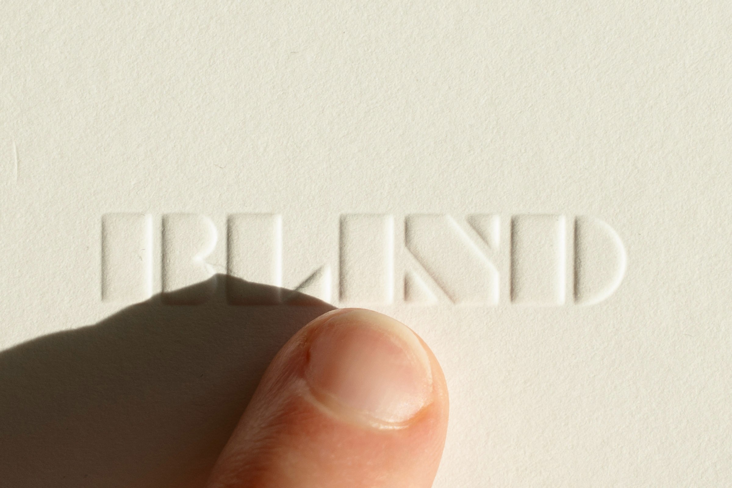 Es muss gar keine Folie sein. Eine Blindprägung ist eine elegante, mutige Entscheidung für Puristen. Eine Blindprägung ist, wie der Name schon verrät, rein haptisch. Es gibt weder Glanz, noch Farbe. Man sieht die Prägung kaum, aber man fühlt sie.