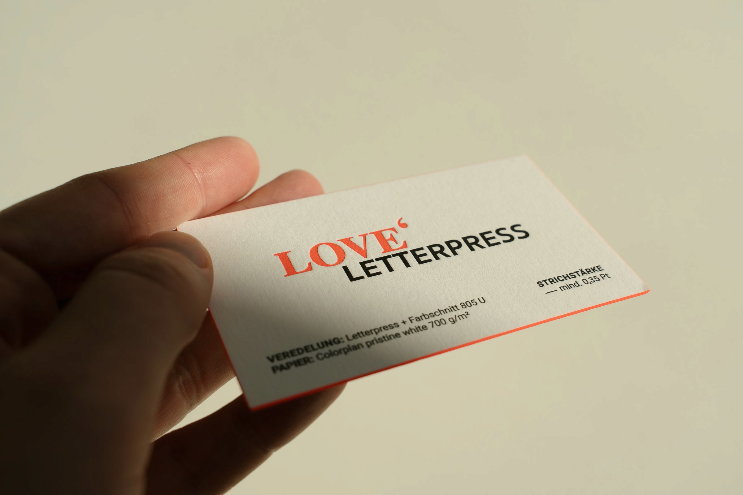 Eine zu dünne Karte fühlt sich nach Übergang an. Irgendwie nach “muss erst mal reichen” und dann wird sie oft einfach so gelassen. Beim Übergeben der Karte wird dann gesagt, dass man gerade erst startet und erst mal was haben wollte. Eine schwere, dickere Karte mit z.B. 540 g/m² Grammatur hingegen, wirkt selbstbewusst, klar und wie “ich bin angekommen”.