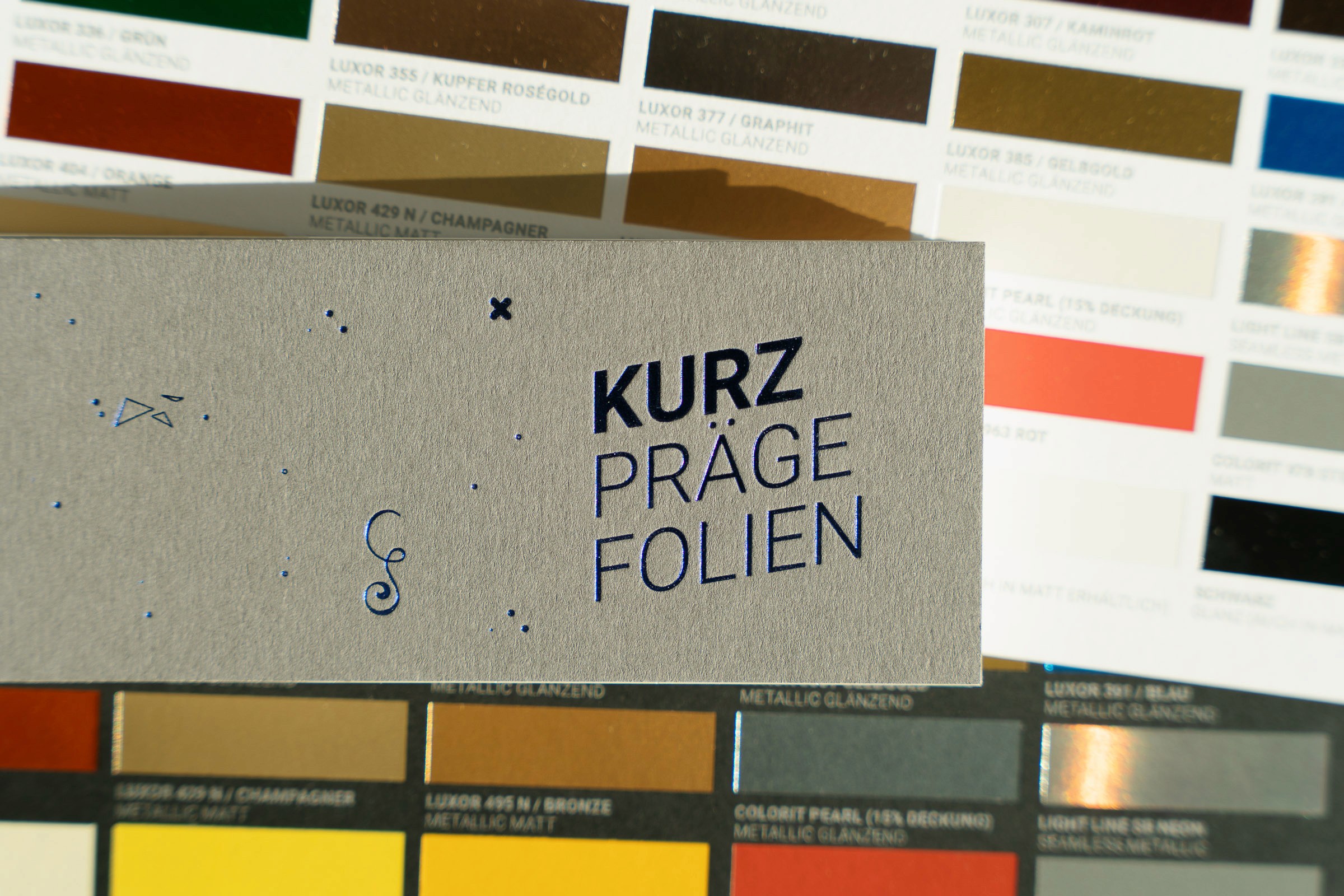 Eine Folienprägung gezielt und in der richtigen Farbkombination eingesetzt hingegen, kann sehr edel und hochwertig wirken. Es ist ein schmaler Grad, der nicht nur von der Gestaltung, sondern auch von Papier, Haptik und Farbigkeit abhängt. Es gibt Folien in verschiedenen Farben. Für meine alten Visitenkarten habe ich z.B. eine dunkelbraune Folie auf einem cremefarbenen Colorplan Papier verwendet. Es schimmert leicht im Licht, wirkt reduziert, geerdet und hochwertig. Eine Folienprägung funktioniert dann am besten, wenn sie zur Marke passt, nicht wenn sie Luxus simulieren soll.