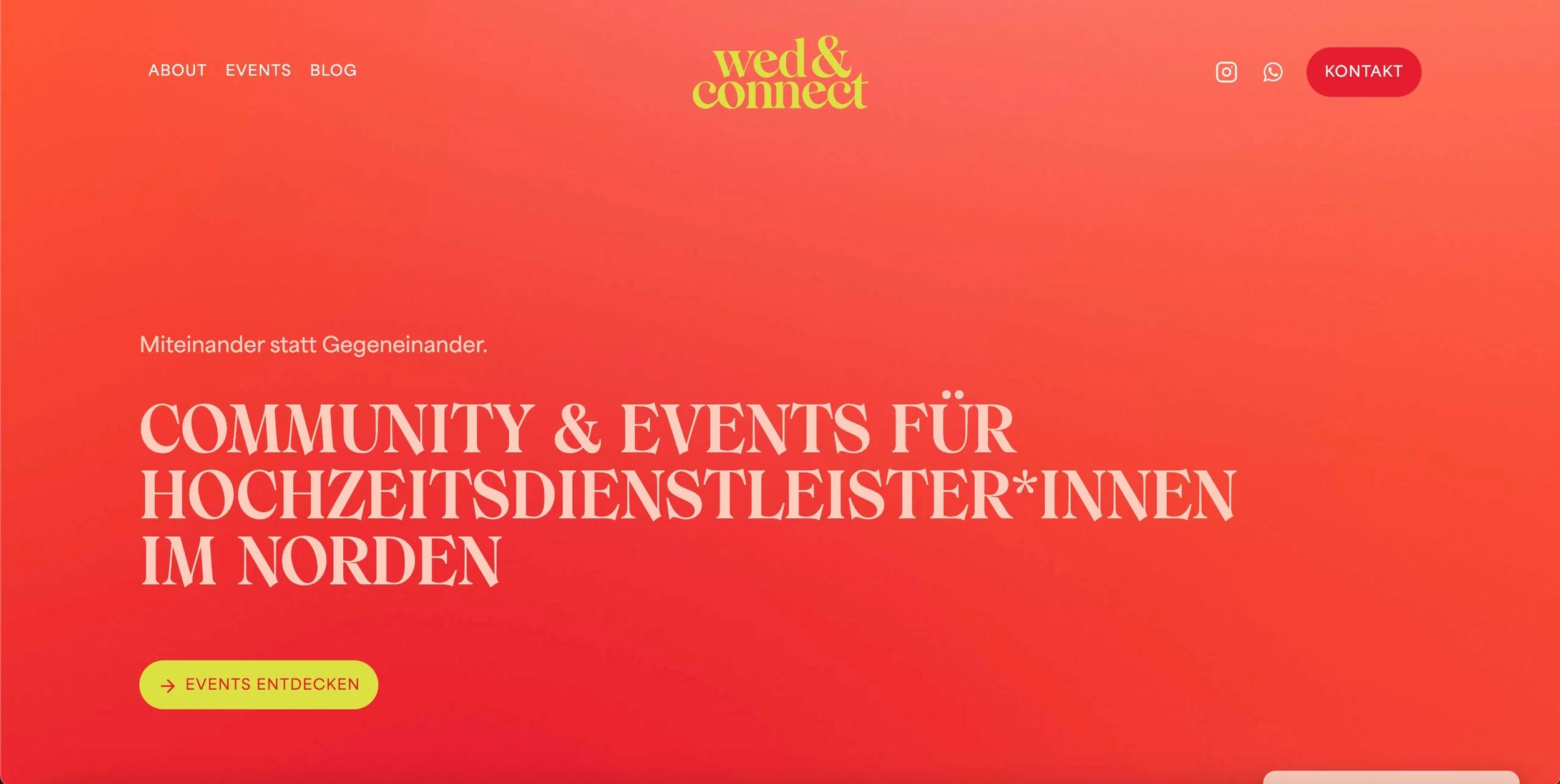 Ganz frisch ist nun die neue wed&connect Website online gegangen. Ich bin selbst Mitgründerin dieses Netzwerkes für Dienstleister*innen der Hochzeitsbranche und engagiere mich für ein “Miteinander statt Gegeneinander”. Wir möchten Verbindungen schaffen, Inspiration teilen und eine Community fördern, in der Zusammenarbeit auf Augenhöhe möglich ist.